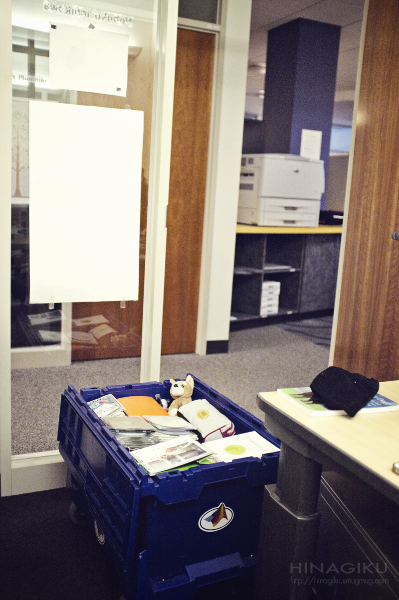 Packing up to move to the new department which is located in another building. I was given two of those boxes to fill, and on Monday, they will come and move the boxes and equipments.