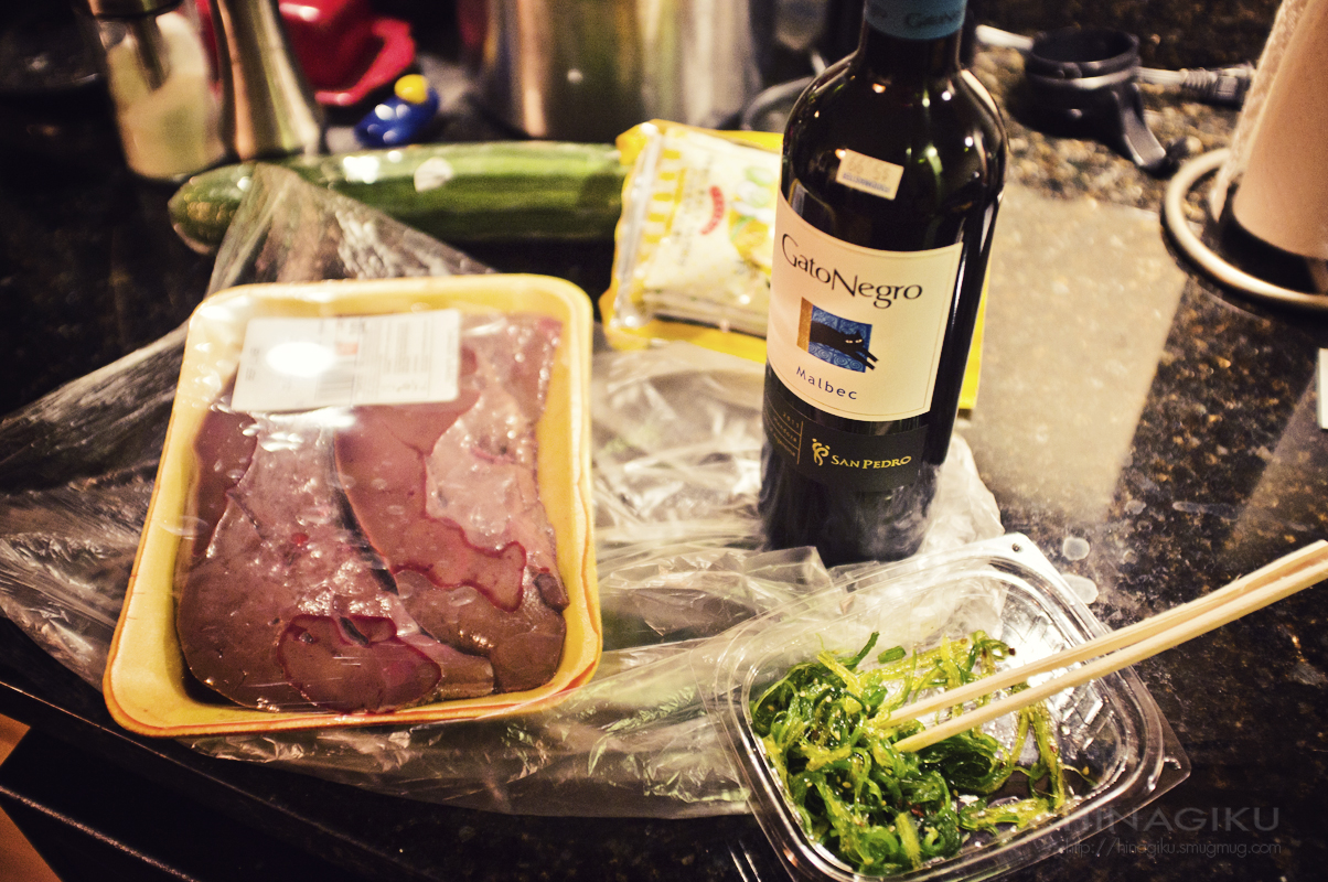 Currently, I’m planning to make doggie treats from beef livers, while having a leftover seaweed salad from the Korean grocery store, make some quick Japanese style pickles with the cucumber, while drinking a very cheap bottle of Malbec. I’ve been watching random netflix movies, all evening. I am so excited for the rest of the weekend.