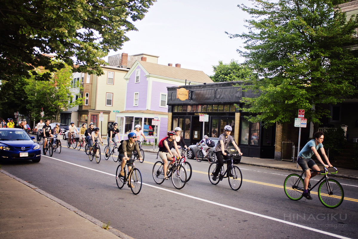 While loading my pup into my car before driving him to a park for an early evening walk, we saw this huge group of people riding down my street. I wonder if there was some march for a cause or something.
