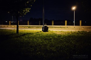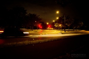 While walking the pup late at night, we passed this street lamp. This is bit of an isolated area. Cars go by but not pedestrians. This guy sat at the foot of the lamp post, reading a very thick book. Very very intriguing.
