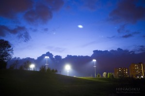 We talked about doing this before, but we always got to this park well after sunset. Showing our dog to the friend in the dark was not going to achieve the maximum cuteness effect. Today, I happened to come home a little earlier. The light was still out.