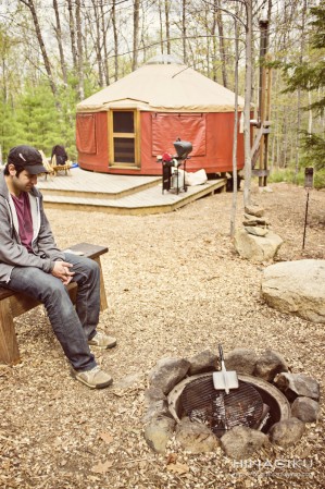 We spent the weekend with 7 friends in Maine. We rented 3 yurts. One for us (P, K-dog, and me), one for 5 people who wanted to stay together and save money, and one for another couple.