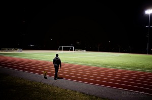 Another very warm day and very warm night. This field is normally without any lights by the time we visit for a walk. Tonight, there were people kicking some balls and jogging around the tracks. Awesome for them, a bummer for my dog who likes peace and quiet.