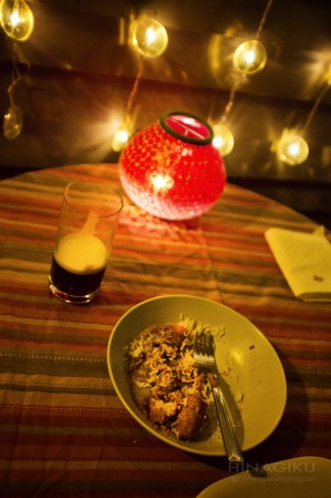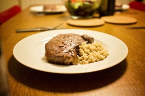 Friends invited us for dinner tonight. They cooked up those delicious pieces of beef. I only finished half of mine, unfortunately. Everybody else finished their piece, I think.