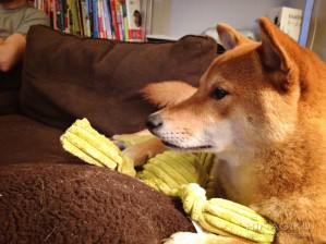 We slacked (a lot) the nail cutting of our dog. Then today, we tried to get it done all at once. We cut off a bit too much of one nail. Poor K yelped, squirmed in my arms, then ran away, leaving a little blood stain on my jeans.