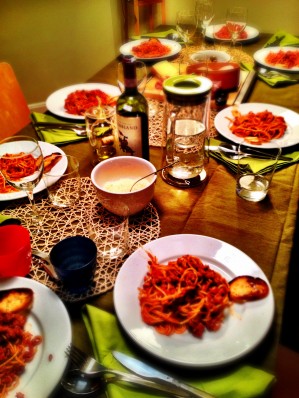 We were invited to P’s friends’ home for a dinner party. The husband cooked and the wife prepared the table and the room. It was nice and fun, with a simple dish like spaghetti meat sauce and garlic bread. I’m not too confident about hosting any sort of parties. (I didn’t even have a housewarming when I moved into the current place, and my friends still give me a hard time about it after 5 years.) Maybe I’ll give it a try this year. Maybe.