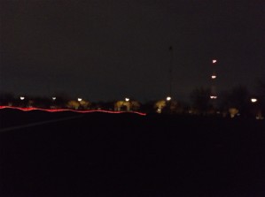 Then, we drive to the nearest large park. With the Sun setting around 4:30pm nowadays, the park is totally dark. We’ve bought a red light attachment for the harness so we can see K at the end of the 30-feet leash. The pup is ecstatically happy. I see straight and zigzag red lines in the darkness, around and around, back and forth.